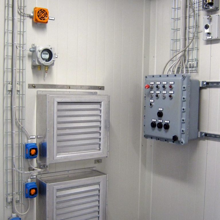 OMNISHELTER designs and supplies special hazardous shelters type equipped with systems and accessories in order to prevent any explosion risks and gas contamination, such as Pressurized Shelters, Battery Shelters and Analyzer Shelters for the recovery of equipment such as Gas Chromatograph and Moisture Analyzer. The shelters are usually equipped with electrical, cooling, fire extinguishing systems and accessories.